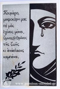 Στο κεντρικό πάρκο τής Μεσσήνης εκτέθηκε για πώληση αυτή η καρτούλα, μαζί με άλλες συναφείς και με διάφορα βιβλία και μικροαντικείμενα, τον