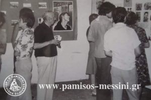 Μάλλον είναι από την εκδήλωση του Συλλόγου Μεσσηνίων Φοιτητών τον Ιούλιο του 1975. Στη φωτογραφία στιγμιότυπο από την έκθεση στο οποίο απαθανατίζεται ο τότε δήμαρχος Δ. Κούτσικας