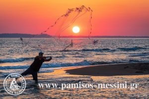 Η φωτογραφία είναι καταπληκτική αλλά δεν έχει καμία σχέση με το Νησί. Βοηθάει όμως να ξεδιπλώσουμε κάποιες σκέψεις σχετικά με το γενέθλιο τόπο. Απαθανατίζει ψαρά με πεζόβολο στις εκβολές του Αλφειού. Αρχέγονος τρόπος ψαρέματος , ένα στρογγυλό δίχτυ με βαρίδια στην άκρη για ψάρεμα από την ακτή. Και ειδικά σε εκβολές ποταμών όπου υπάρχουν συγκεντρώσεις ψαριών. Δεν γνωρίζω αν εφαρμόζεται αυτός ο τρόπος ψαρέματος στις εκβολές του Παμίσου ή αν κάποιοι συμπατριώτες το πρόλαβαν. Το σίγουρο όμως είναι πως αυτό γινόταν την εποχή του ανθρώπου – τροφοσυλλέκτη.