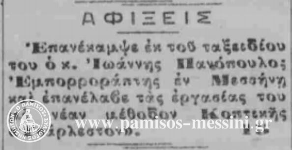 «Εμπορορράπτης» ο Ιωάννης Πανόπουλος το 1927 «επανέκαμψε εκ του ταξειδίου του» και «επανέλαβε τας εργασίας του με την νέαν μέθοδον κοπτικής «τσάρλεστον»….
