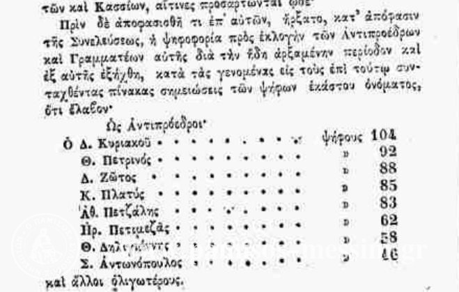 [Στη φωτογραφία απόσπασμα από τα πρακτικά της Β’ Εθνοσυνέλευσης (1862-1864) μετά την έξωση του Οθωνα στο οποίο φαίνεται ότι ο Σπήλιος Αντωνόπουλος ως πληρεξούσιος Μεσσήνης, είχε θέσει υποψηφιότητα για τη θέση του αντιπροέδρου]