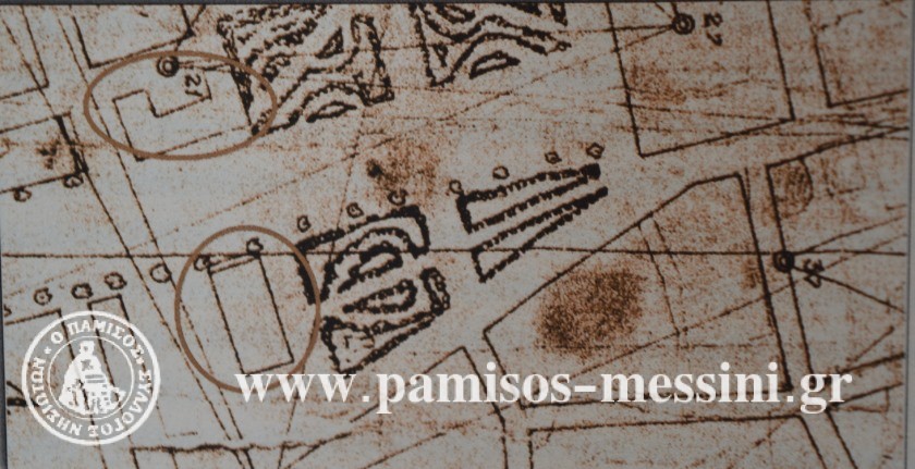 , αρκτικώς με δρόμον της αγοράς Μεσσήνης, και μεσημβρινώς με οικίας του Βασιλείου (Δ)ίζη (