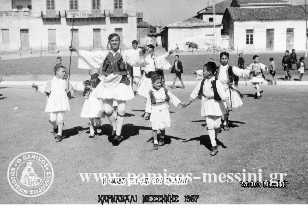 Το πρωί της Καθαροδευτέρας του 1957, το ασκέρι του Ηλία Σαούλου (Μιχαλόπουλου) με κλαρίνο και τούμπανο γυρνά τις ρούγιες της Μεσσήνης προσκαλώντας τον κόσμο στην πλατεία το μεσημέρι για την κεντρική παρέλαση.