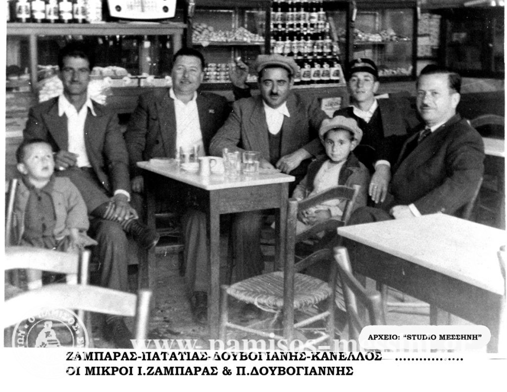 Νησιώτικη παρέα στο ουζερί της «χήρας» (σημερινό προποτζίδικο του Γιαννέτσου) το 1953 ή 1954