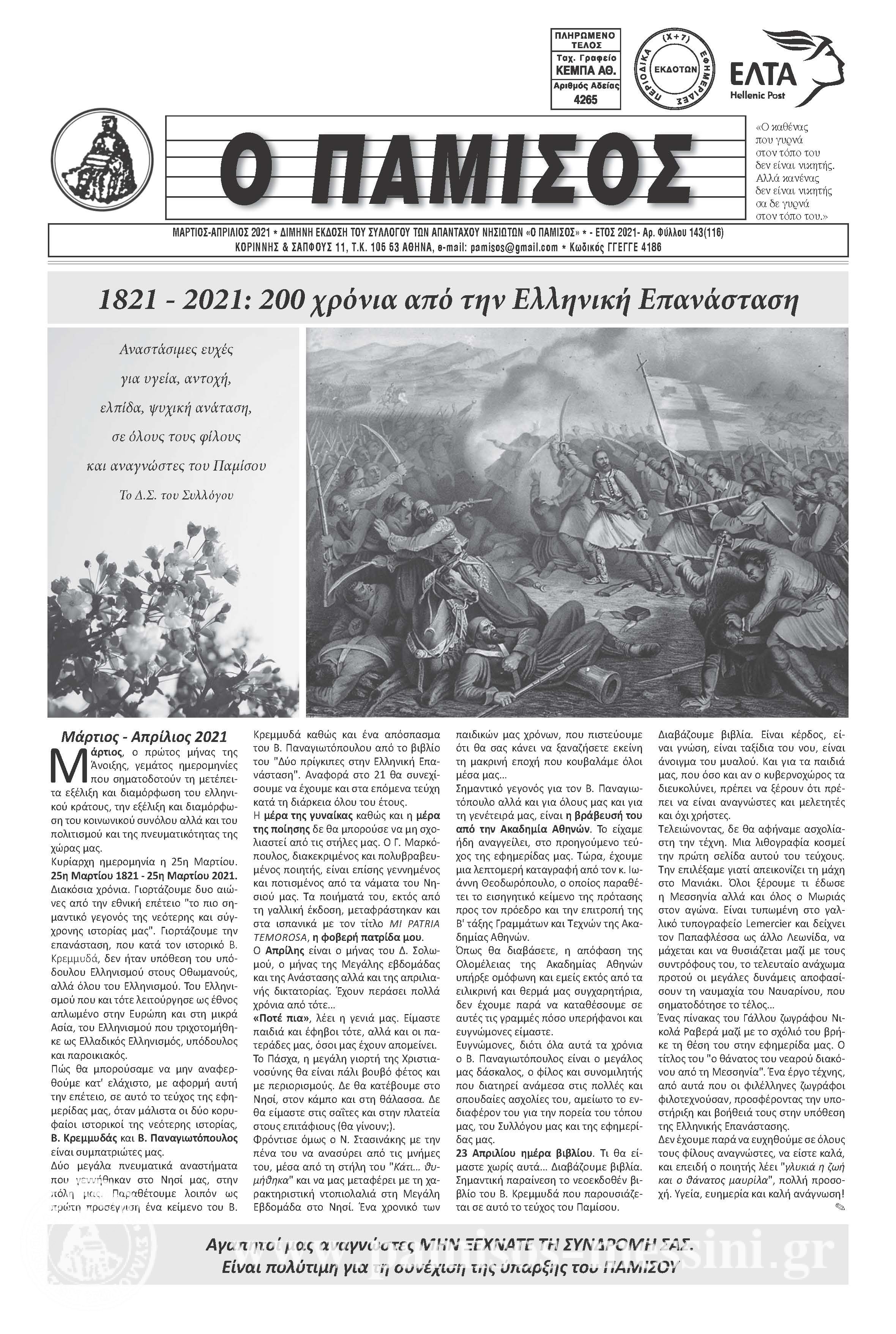 τιμάμε τα 200 χρόνια 1821-2021 στο 143ο φύλλο του ΠΑΜΙΣΟΥ.
