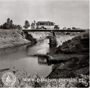 [Στη φωτογραφία η ξύλινη γέφυρα τη δεκαετία του 1950, από το λεύκωμα των ΓΑΚ Μεσσηνίας για το Νησί που έγραψε και επιμελήθηκε η Αναστασία Μηλίτση-Νίκα]