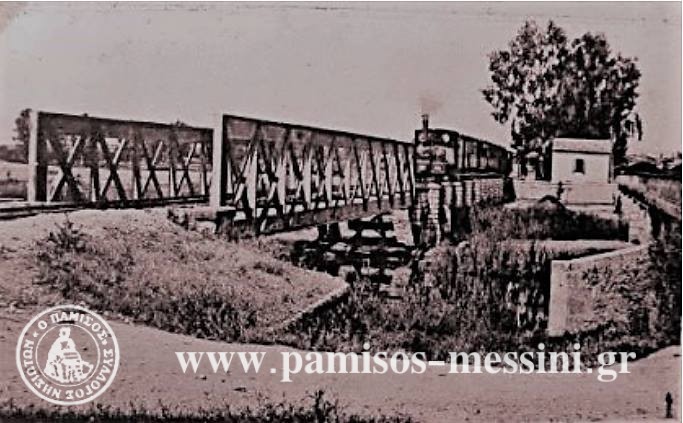 Το τρένο φεύγει από το Νησί, κάπου τη δεκαετία του 1930, η εικόνα πάνω στη γέφυρα με το φυλάκιο και τον ευκάλυπτο. Συνδεδεμένο με τη ζωή της πόλης για κάποιες ηλικίες, αντιμετωπίστηκε αρνητικά από σημαντικό μέρος του πληθυσμού της πόλης από την αρχή. Το 1882 κυκλοφορούσε στο Νησί η εφημερίδα “Πάμισος” προσκείμενη στην οικογένεια Καρατζά, αν όχι και ιδιοκτησία της. Υποστήριζε το Δήμαρχο Ιωάννη Καρατζά και το δημαστυνόμο (και αργότερα δήμαρχο) Γεώργιο Καρατζά, αλλά και τον Αλέξανδρο Κουμουνδούρο. Η χρονιά εκείνη χαρακτηρίζεται ως “έτος μηδέν” για το σιδηρόδρομο, καθώς την άνοιξη αυτού του χρόνου ψηφίζονται από τη Βουλή τρία νομοσχέδια που υπέβαλε η κυβέρνηση Χ. Τρικούπη και ξεκινάει η δεκαετία που άλλαξε ριζικά το τοπίο στις μεταφορές. Η συζήτηση στη Βουλή ήταν μεγάλη και εκδηλώθηκε σφοδρή αντιπαράθεση ανάμεσα στο Χ. Τρικούπη και τον Αλ. Κουμουνδούρο για τα γεωμετρικά χαρακτηριστικά του σιδηροδρόμου και τη στόχευση του εγχειρήματος. Κατά βάση ο Τρικούπης υποστήριζε τη μετρική γραμμή ως ανταποκρινόμενη στις οικονομικές δυνατότητες και τη γεωμορφολογία και ο Κουμουνδούρος την κανονική γραμμή με στόχο τη σύνδεση με διεθνείς γραμμές που θα μπορούσαν να κατασκευαστούν. Στην αντιπαράθεση για τις γραμμές που θα έπρεπε να θεωρηθούν ως “διεθνείς” και να γίνουν κανονικές όπως υποστήριζε η αντιπολίτευση ο Τρικούπης περιέλαβε μόνο αυτή της Καλαμάτας ως προέκταση της γραμμής Αθήνας-Λάρισας-Θεσσαλονίκης: “Το διεθνές της γραμμής ταύτης στηρίζεται επί της ελπίδος, την οποία δυνάμεθα να έχωμενμ ότι αι Καλάμαι θα είναι το ευρωπαϊκόν άκρον της συγκοινωνίας των δια του σιδηροδρόμου μεταβιβαζομένων εις Αίγυπτον και δι’ Αιγύπτου εις την Ινδικήν. Αλ’ αύτη η ελπίς δεν είναι θετική. Ουδόλως είναι βέβαιον ότι το εμπόριον των Ινδιών μετά της Ευρώπης δια της Αιγύπτου θέλει προτιμήσει τον σταθμόν των Καλαμών μάλλον ή άλλους, έστω και απώτερους της Αιγύπτου, αλλά παρέχοντας άλλα πλεονεκτήματα”. Συζήτηση περί “συνδυασμένων μεταφορών” στα τέλη του 19ου αιώνα, αλλά σύμφωνα με τον Τρικούπη, εξ αιτίας του ορεινού εδάφους, η κατασκευή της κανονικής γραμμής ως την Καλαμάτα θα απαιτήσει τέτοια δαπάνη “ώστε να μη δυνάμεθα να κατασκευάσωμεν άλλην γραμμήν”.