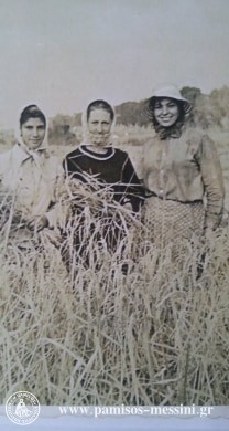 Θέρισμα ρυζιού, στον Μεσσηνιακό κάμπο, με τα δρεπάνια, από ακμαίες και δυνατές γυναίκες κατοίκους του Νησιού, γύρω στο 1960.