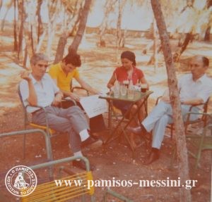 [Η φωτογραφία στο πάρκο της Μεσσήνης όταν πλέον ήμουν φοιτητής γύρω στο 1975, από αριστερά ο πατέρας μου, ένας μοναδικός άνθρωπος για τον οποίο έχουν να λένε τα καλύτερα όσοι τον γνώρισαν και συνεργάστηκαν μαζί του. Δίπλα η αφεντιά μου αφοσιωμένη στην ανάγνωση του “Ριζοσπάστη”. Στη συνέχεια η αδελφή μου και δεξιά ο Αντώνης Γεωργιάδης υπάλληλος της ΑΤΕ, καλός φίλος του πατέρα μου]