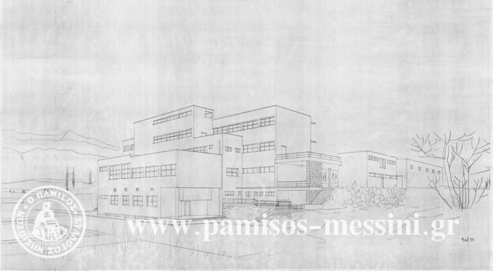 [Στη φωτογραφία το αρχικό σχέδιο του σχολείου από τη βορεινή πλευρά, προβλέπονταν κτήρια και στη δυτική πλευρά του μεγάλου προαυλίου (τόσο μεγάλου ώστε χρησιμοποιήθηκε και ως γήπεδο ποδοσφαίρου) τα οποία δεν έγιναν ποτέ]