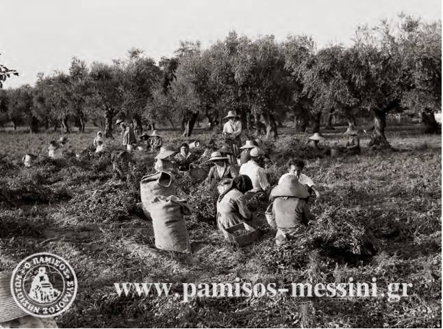 Καλλιέργεια φυστικιού στη Μεσσήνη μάλλον τη δεκαετία του 1950. Οι άνθρωποι της πόλης ήταν πάντα δεμένοι με την καλλιέργεια της γης και ζούσαν απ’ αυτή. Αυτό ήταν και η αιτία μιας άγνωστης κοινωνικής εξέγερσης το φθινόπωρο του 1840. Το κράτος αμφισβητώντας την κυριότητα των κτημάτων επέβαλε ως φόρο διπλοδέκατο, δηλαδή 25% επί του ακαθαρίστου εισοδήματος. Οι Νησιώτες αρνήθηκαν να το καταβάλουν και το κράτος έστειλε στρατό για να υποχρεώσει τους αγρότες να πληρώσουν.