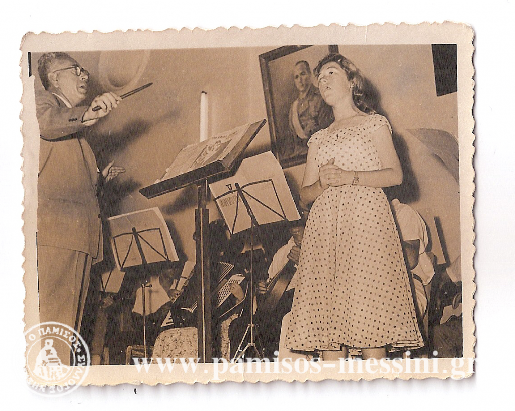 Στα τέλη της δεκαετίας του ’50, η Νησιώτισσα Τούλα Κουμούτσου, σε παράσταση με το Ωδείο Καλαμάτας