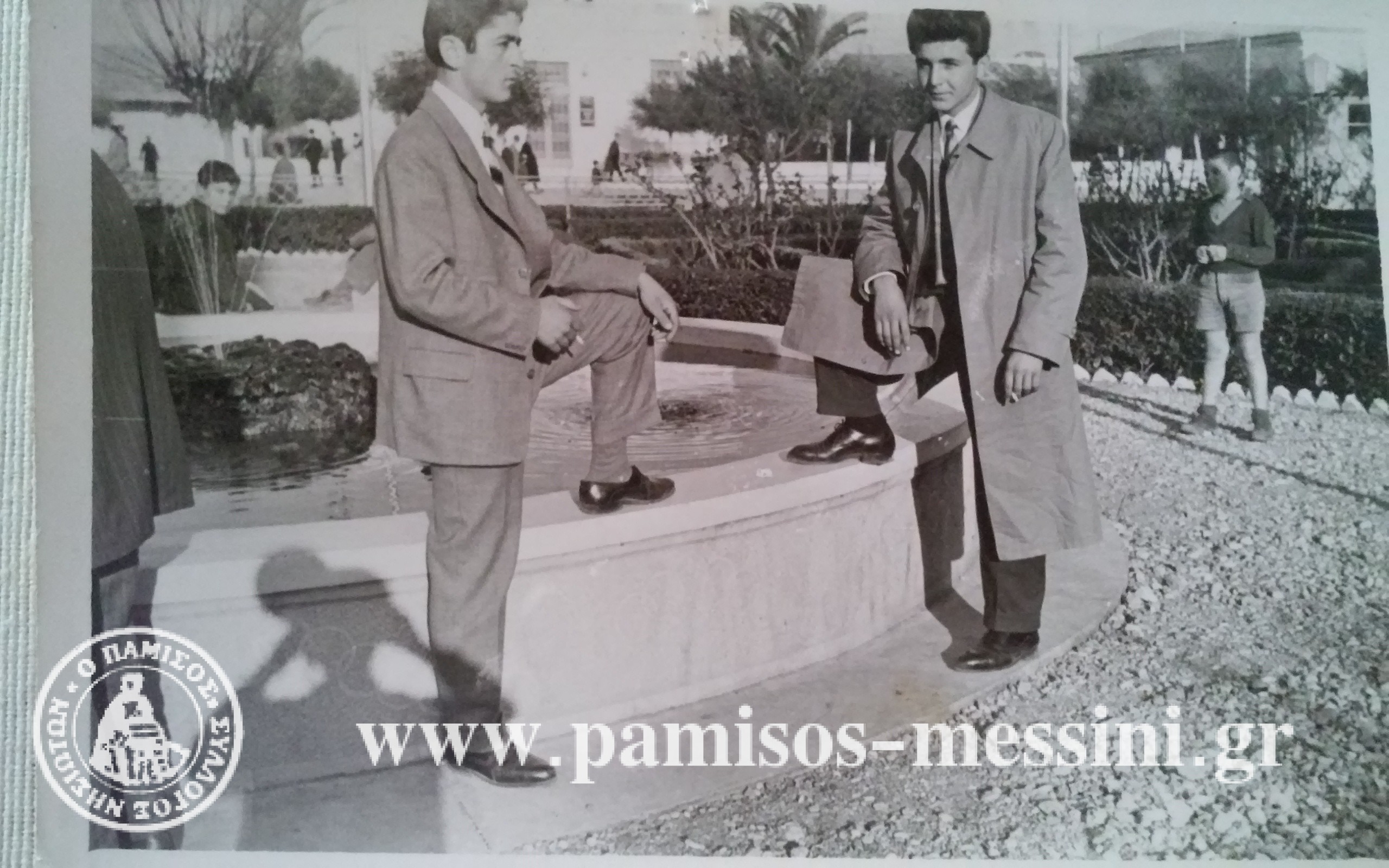 Αριστερά Ηλιόπουλος Παναγιώτης και Μπότης Παναγιώτης. Στο βάθος διακρίνουμε την Εθνική τράπεζα.