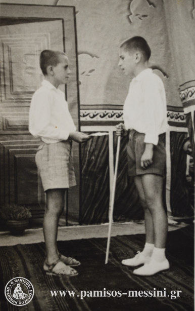 Σχολική γιορτή το 1965 στο 3ο Δημοτικό Σχολείο, όταν τελειώσαμε την Ε’ Τάξη. Από αριστερά Μίμης Ζώης, Ηλίας Μπιτσάνης. Αυτή τη φορά μάλλον έκανα το… γέρο με τη μαγκούρα.