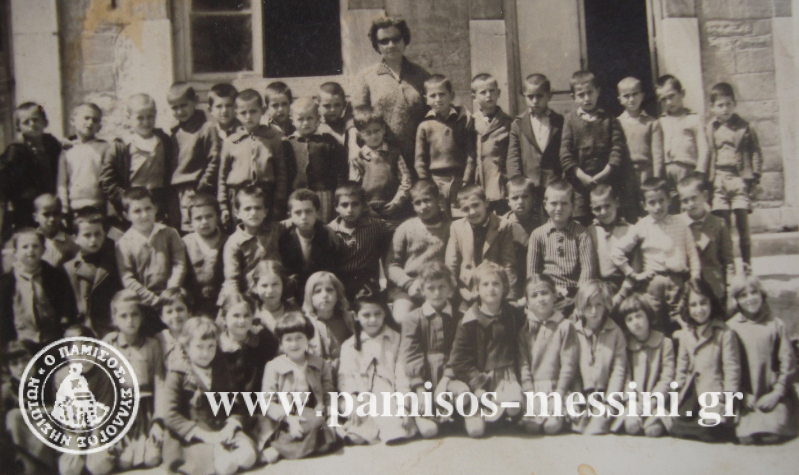 Δευτέρα τάξη του 3ου Δημοτικού Σχολείου 1961-1962, μπροστά από την αποθήκη – παράρτημα στο πέτρινο κτήριο της Μιχαλόπλαινας. Με μια εξαιρετική και ευγενική δασκάλα, την Ασπασία Τσόπελα