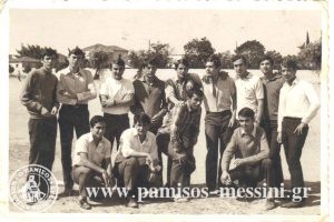 Πίσω σειρά από αριστερά: 1. Παναής Σαραντόπουλος, 2. Φώτης Μητρόπουλος, 3. Σωκράτης Γιαννακόπουλος, 4. Θεόδωρος Αβιζιώτης, 5. Δημήτρης Βλαχόγιαννης (έχει φύγει από τη ζωή), 6. Γιώργος Ηλιόπουλος, 7. Πολύβιος Παναγόπουλος, 8. Βαγγέλης Σαραντόπουλος, 9. Ηλίας Αργυρόπουλος.