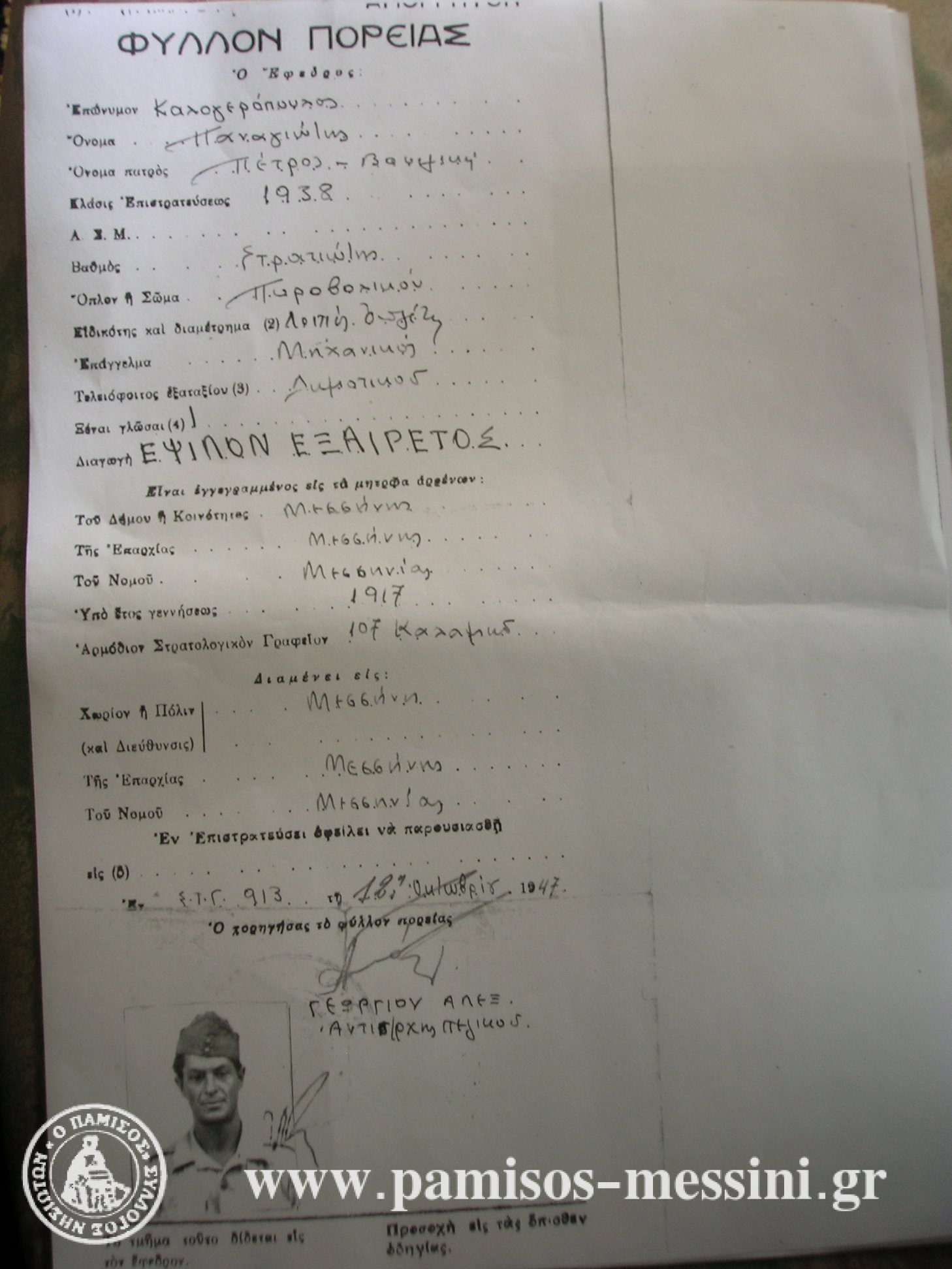 ΦΥΛΛΟ ΠΟΡΕΙΑΣ ΤΟΥ ΜΠΑΜΠΑ ΜΟΥ, ΠΟΥ ΠΗΡΕ ΤΟ 1947 !!!!