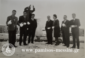 Υπάλληλοι της Ενωσης Αγροτικών Συνεταιρισμών στην χιονισμένη ταράτσα του κτηρίου το χειμώνα του 1968, όταν χιόνισε μετά από δεκαετίες
