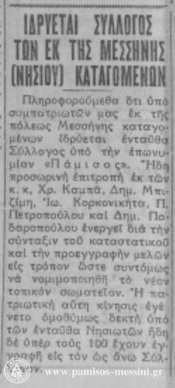 Σύμφωνα με το δημοσίευμα, την προσωρινή επιτροπή αποτελούσαν οι Χρ. Καμπάς, Δημ. Μπιζίμης, Ιω. Κορκονικήτας, Π. Πετρόπουλος και Δημ. Ποδαρόπουλος…
