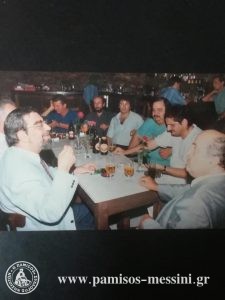 Φώτο 1 : Μετά το πέρας του διημέρου επιστημονικού συνεδρίου, που διεξήχθη στις 12 & 13 Νοεμβρίου 1994 και το οποίο διοργάνωσε το Ίδρυμα Ερεύνης και Εκδόσεων Νεοελληνικής Φιλοσοφίας στη Μεσσήνη με θέμα : «Ελλάς και λοιπή Ευρώπη», ένα εκτός πρωτοκόλλου ποτό θα ήταν κάτι το ιδιαίτερο.