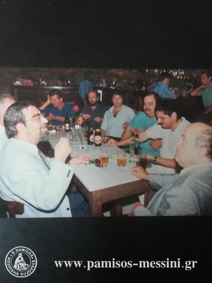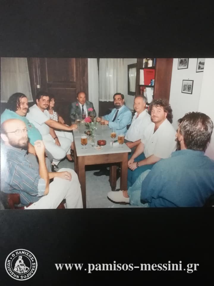 Από αριστερά Ευάγγελος Μουτσόπουλος (Ακαδημαϊκός – Καθηγητής Πανεπιστημίου Αθηνών),Κώστας Πανόπουλος, Νίκος Παναγιωτόπουλος, ο γράφων, ο αδελφός μου Δητράκης, Γιάννης Πλατάρος, ; Χριστόφιλος (Λυκειάρχης Μεσσήνης). 13-11-1994.