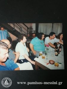 Από αριστερά διακρίνονται, Χαΐνης Γιάννης, ; , Λαζαράκος Δημήτριος (ιεροψάλτης Ι. Ν. Αγίου Ιωάννου Προδρόμου Μεσσήνης, μακαρίτης), ο Πατήρ Κων/νος Μελλισουργός, εφημέριος Ι. Ν. Αγίου Ιωάννου Προδρόμου Μεσσήνης, Δημητρούλιας Κων/νος και πιό πίσω ο Μουσελίνος Κων/νος, ο μακαριστός ιερέας Ιωάννης Κωνσταντόπουλος, ο Μουσελίνος Δημήτρης, ο Δουρούμης Παναγιώτης, η σύζυγός μου Λίτσα, ο σύζυγος της Λίτσας προσπαθώντας να «τιθασεύσει» την μικρή μας κόρη Μαρία, Σιάμητας Δημήτρης, ο μακαρίτης γαμπρός μου Δρακόπουλος Χρήστος η αδελφή μου Ελένη, ο γαμπρός Πουλόπουλος Σταύρος και ανηψιός μου Ηλίας Πουλόπουλος.